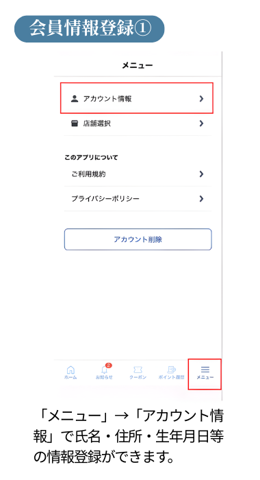 ▶ メニュー(アカウント情報)